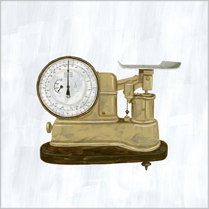 今月の表紙:令和4年5月号「石田式不変敏感自働秤」(イラストレーション・小池ふみ)