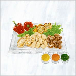 今月の表紙:令和4年10月号・お肉惣菜(イラストレーション・小池ふみ)