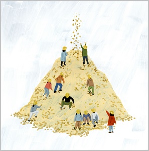 今月の表紙:令和4年12月号・木材チップで「木育」(イラストレーション・小池ふみ)