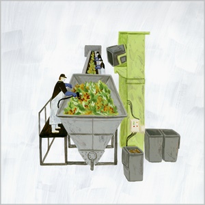 今月の表紙:食品廃棄物の再生(イラストレーション・小池ふみ)