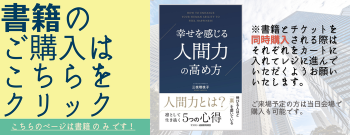 受講費:1,500円(税込)※テキストとして『幸せを感じる人間力の高め方』を使用します。お持ちでない方は事前にご購入ください。来場での参加の方は当日会場で購入可能です。