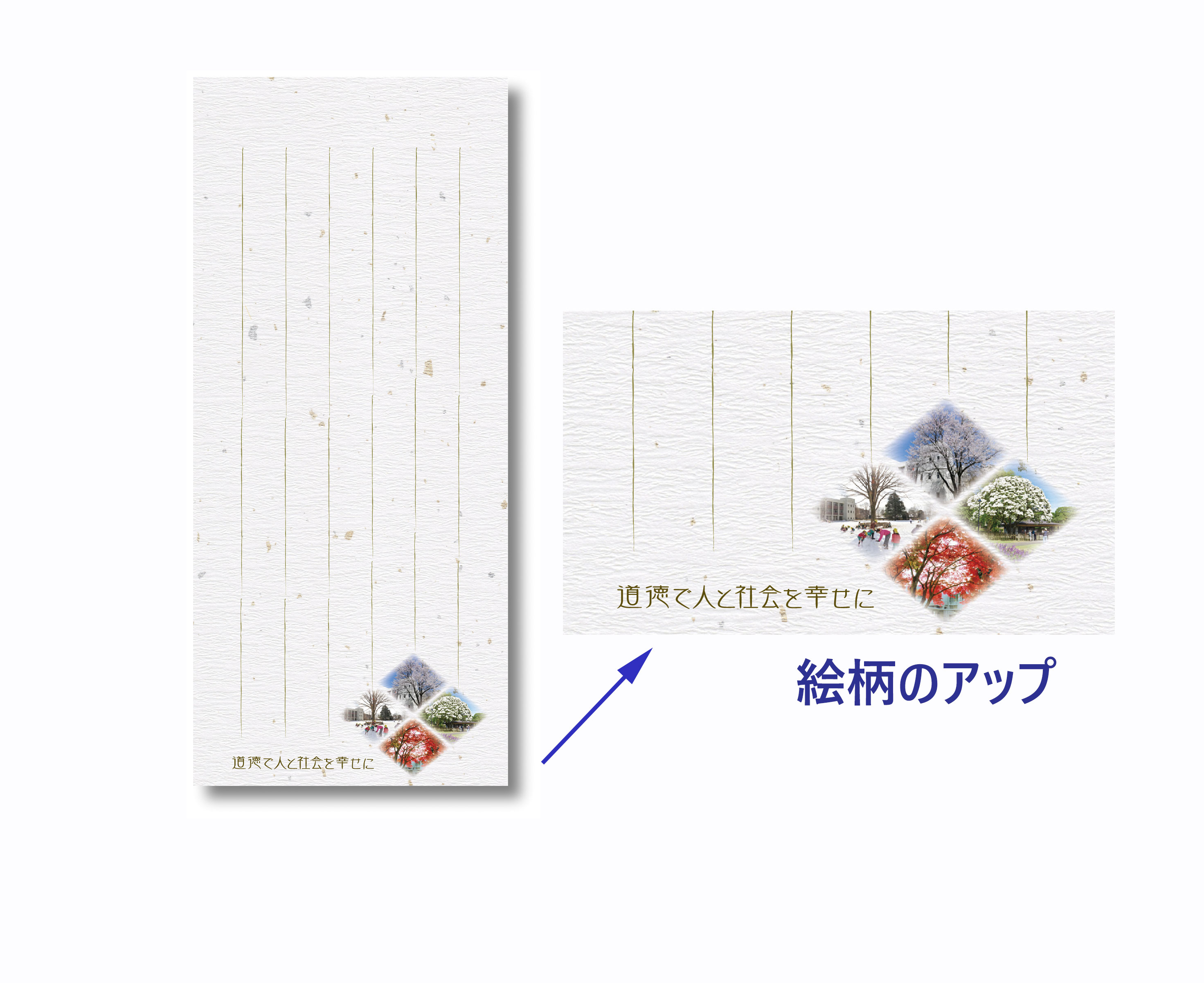 満開の薄墨桜、五月晴れに向かって咲く“なんじゃもんじゃ”、燃えるような紅葉の赤、元気な子供たちの雪遊び――。和紙風の地紋に、自然豊かな当財団の四季がワンポイントとして紙面を飾ります。